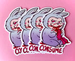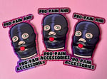 PRO-PAIN has a pink, glittery finish, CONSUME with a standard vinyl look.